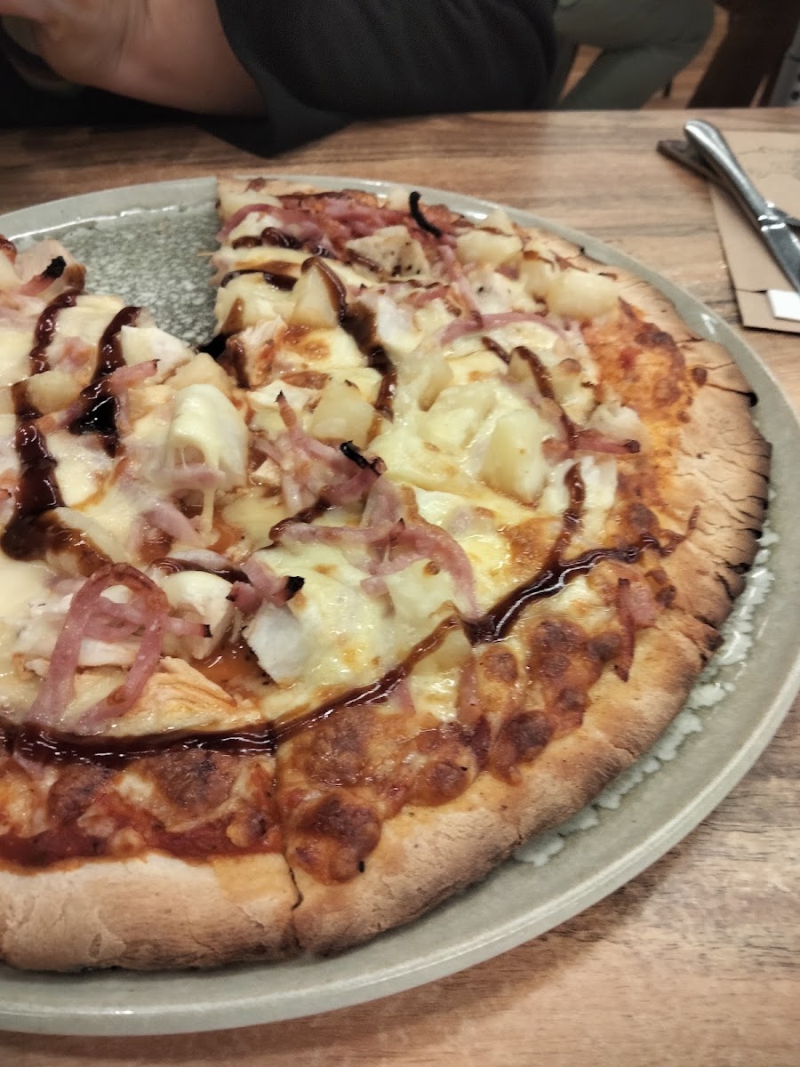 The menu leans into familiar café-style food with a local twist—options like stone-baked pizzas and hearty burgers sit alongside breakfast staples such as eggs Benedict and halloumi dishes. Many visitors appreciate the generous portions, especially the smoked ribs and chicken parmi, which add a comforting, homestyle element to an airport stop. For those after something lighter or quicker, the toasted banana bread and well-crafted coffee drinks like the caramel latte and cappuccino provide satisfying, easy choices.